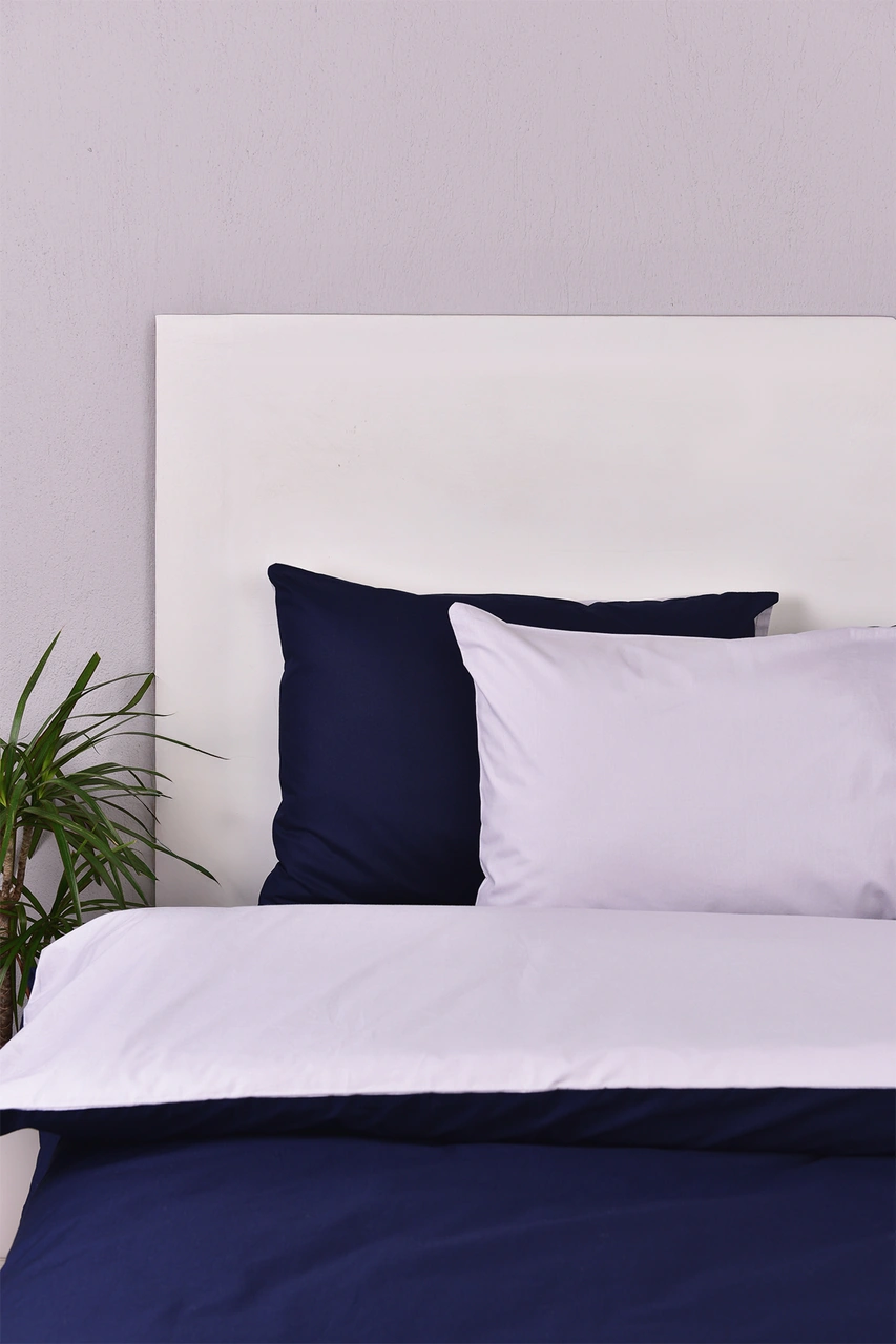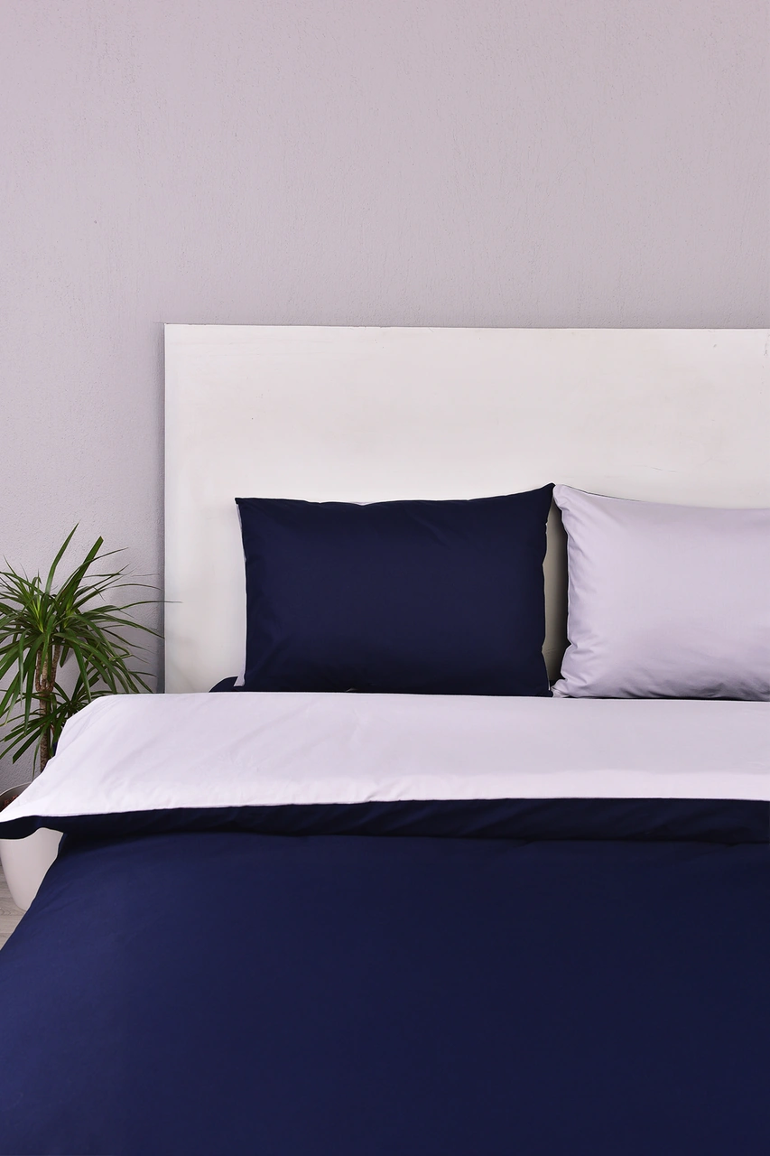 Çift Taraflı Çift Kişilik Nevresim Takımı Lacivert Gri %100 Pamuk Lacivert - Gri