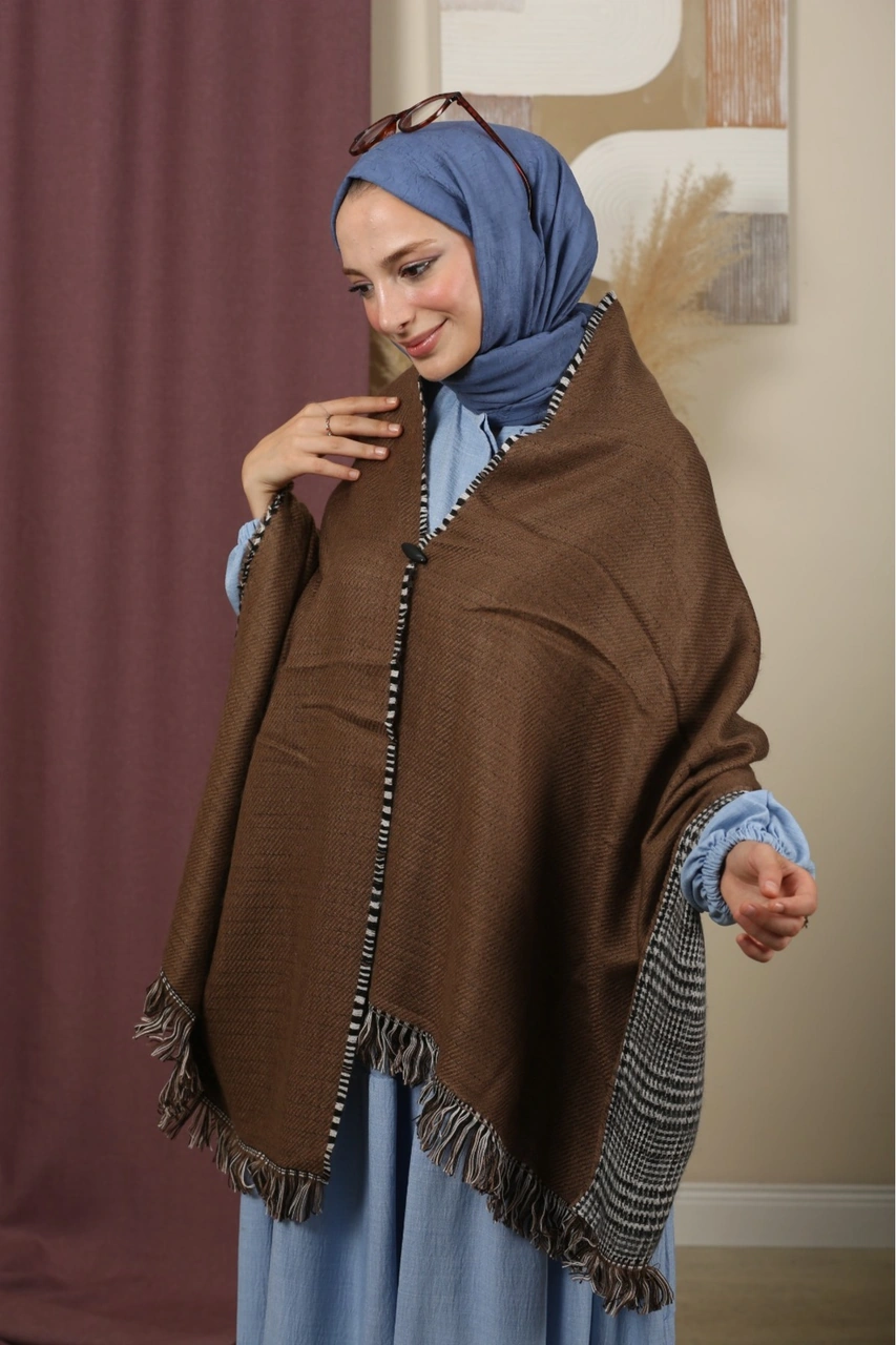 Çift Taraflı Ekose Kışlık Omuz Şalı Kahve