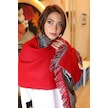 Çift Taraflı Kazayağı Desenli Atkı Omuz Şalı 70x185 CM 1212 Kırmızı