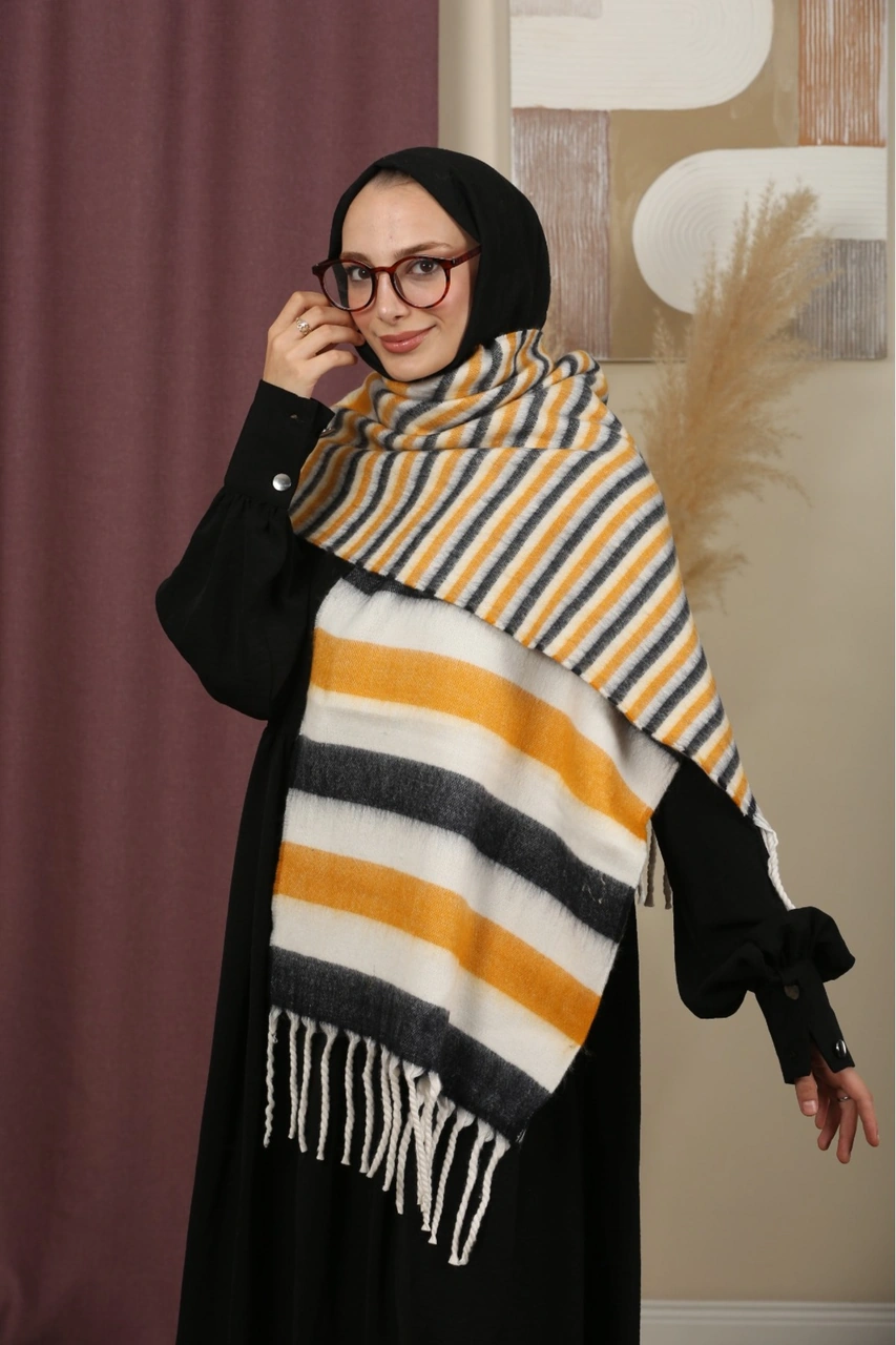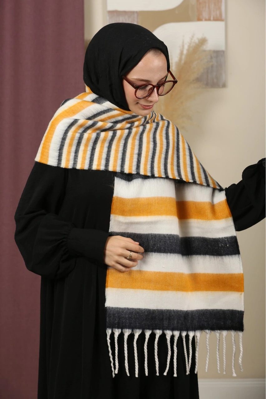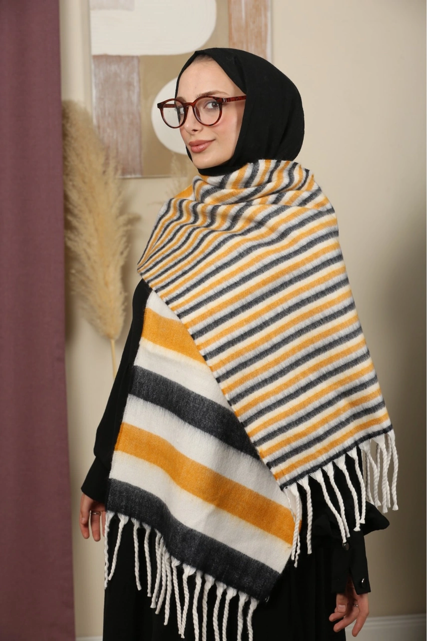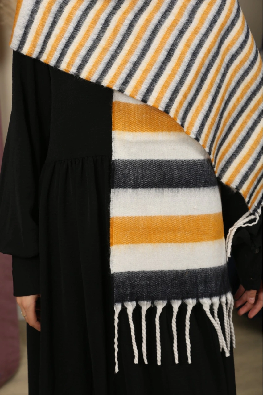 Çift Taraflı Kışlık Omuz Şalı Hardal