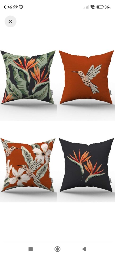 Çift Taraflı Turuncu Çiçek Kuş Desenli Dijital Baskılı Kırlent Kılıfı Seti 4kmbs324-ct