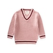 Cigit Saç Örgü V Yaka Kazak 2-9 Yaş Pudra Pembe Pudra Pembe