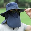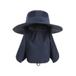 Çıkarılabilir Boyun Koruyucu Ve Yüz Siperli Geniş Kenarlı Güneşlikli Şapka Mavi