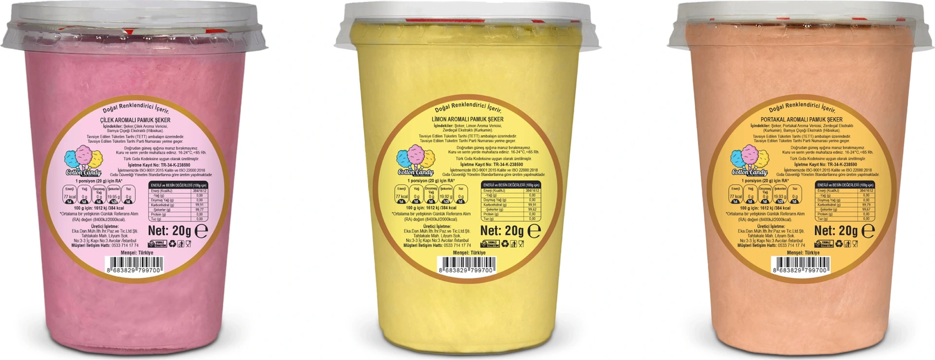 Çilek, Limon, Portakal Aromalı 3'lü Gurme Pamuk Şekerler