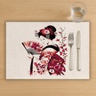 Çin Yelpazeli Kadın Tasarımlı Amerikan Servis, Tabak Altlığı & Şık Masa Dekoru, Ev Hediyesi, 2 Adet Krem