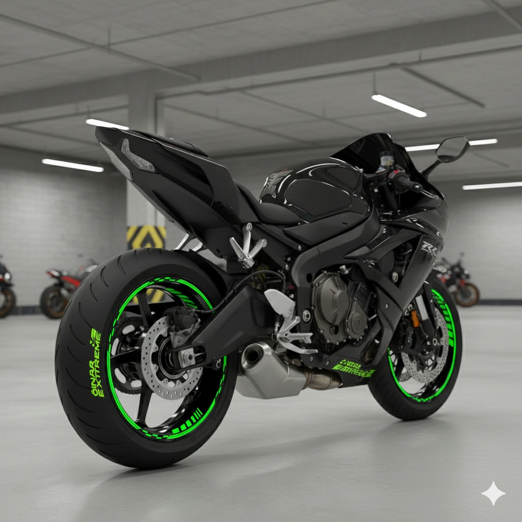 Çınar Extreme Pro Serisi Floresan Neon Yeşil Motor Jant Sticker Seti 16"-17"-18" İç-dış Jant Şerit Takımı Suya Ve Güneşe Dayanıklı Çok Renkli