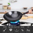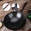 Çinli El Dövülmüş Demir Woks, Yuvarlak Tabanlı Dökme Demir Wok & Ahşap Kapaklı Kızartma Tavaları, Kaplama, Daha Az Yağ, Yapışmaz Pot-36cm 30cm Ahşap