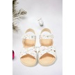 Cırt Cırtlı Ekru Baskılı Kız Çocuk Sandalet 001