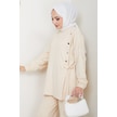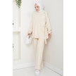 Tesettür İkili Takım Uzun Tunik Bol Paça Pantolon 4006-bej Bej