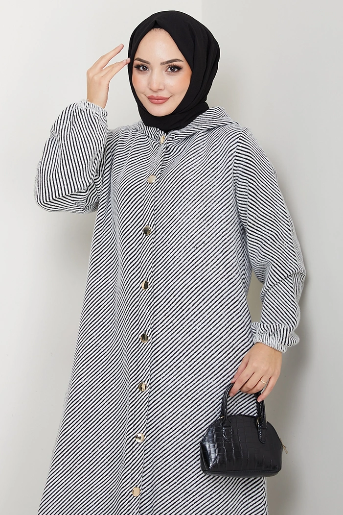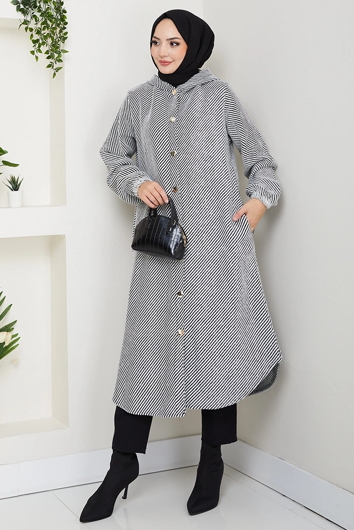 Çizgi Detay Kapüşonlu Kaşe Kap 1634 - Beyaz Beyaz