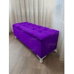 Çizgi Kapitoneli Sandıklı Puf 100 Cm Beyaz Ayak Mor