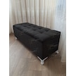 Çizgi Kapitoneli Sandıklı Puf 100 Cm Beyaz Ayak Siyah