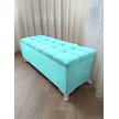 Çizgi Kapitoneli Sandıklı Puf 100 Cm Beyaz Ayak Turkuaz