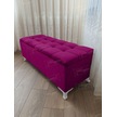 Çizgi Kapitoneli Sandıklı Puf 90 Cm Beyaz Ayak Mor