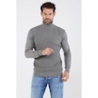 Çizgi Triko Erkek Tam Balıkçı Yaka Pamuklu Triko Kazak 4669E Gri