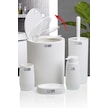 Çizgili 5 Parça Banyo Seti Çöp Kovası Tuvalet Fırçası Diş Fırçalık Sıvı Sabunluk Katı Sabunluk - Beyaz