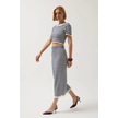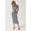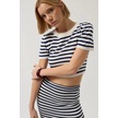 Çizgili Bisiklet Yaka Crop Beyaz - Lacivert