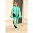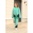 Çizgili Bisiklet Yaka Triko Takım Yeşil Yeşil