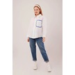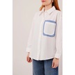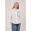 Çizgili Cep Detaylı Beyaz Gömlek Beyaz
