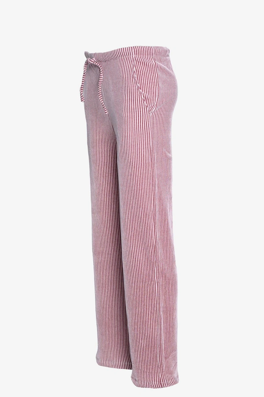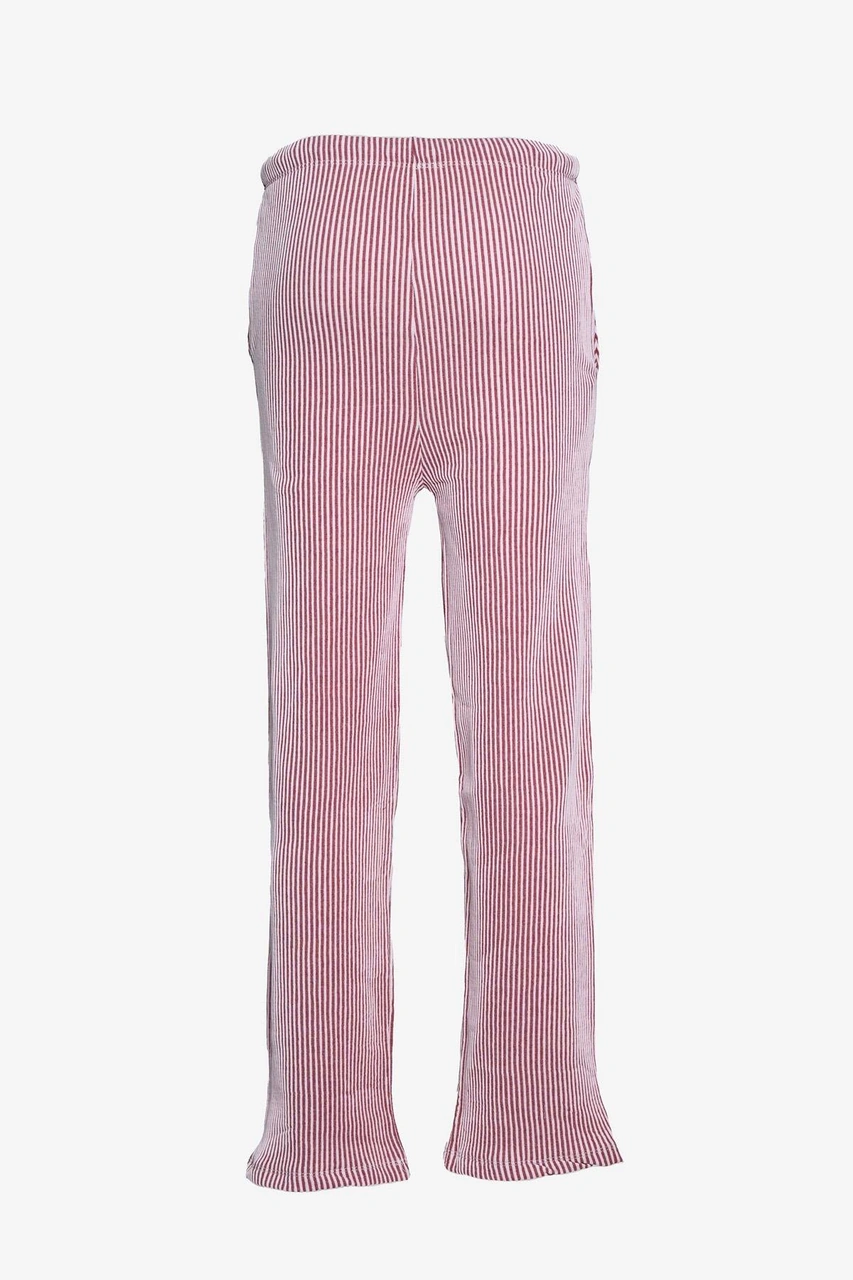 Çizgili Düz Paça Beli Lastikli Pantolon - Bordo Bordo