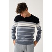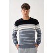 Deepsea Erkek Antrasit Slim Fit Likralı Tüylenme Yapmayan Yarım Balıkçı Çizgili Triko Yarım Boğazlı Kazak 2505503 Antrasit