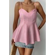 Çizgili Gofre Askılı Pens Detaylı Bluz - Pembe Pembe
