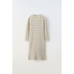 Çizgili Kız Çocuk Uzun Elbise KREM
