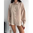 Kadın Gömlek Düğme Eklemeli Balıkçı Yaka Uzun Kollu Rahat Bol Kesim Gömlek Düz Şarap Kırmızısı