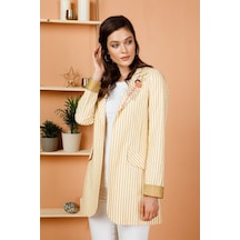 Çizgili Sol Yaka Broslu Spor Ceket Sarı