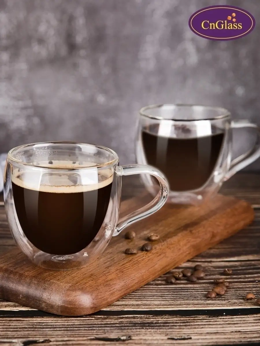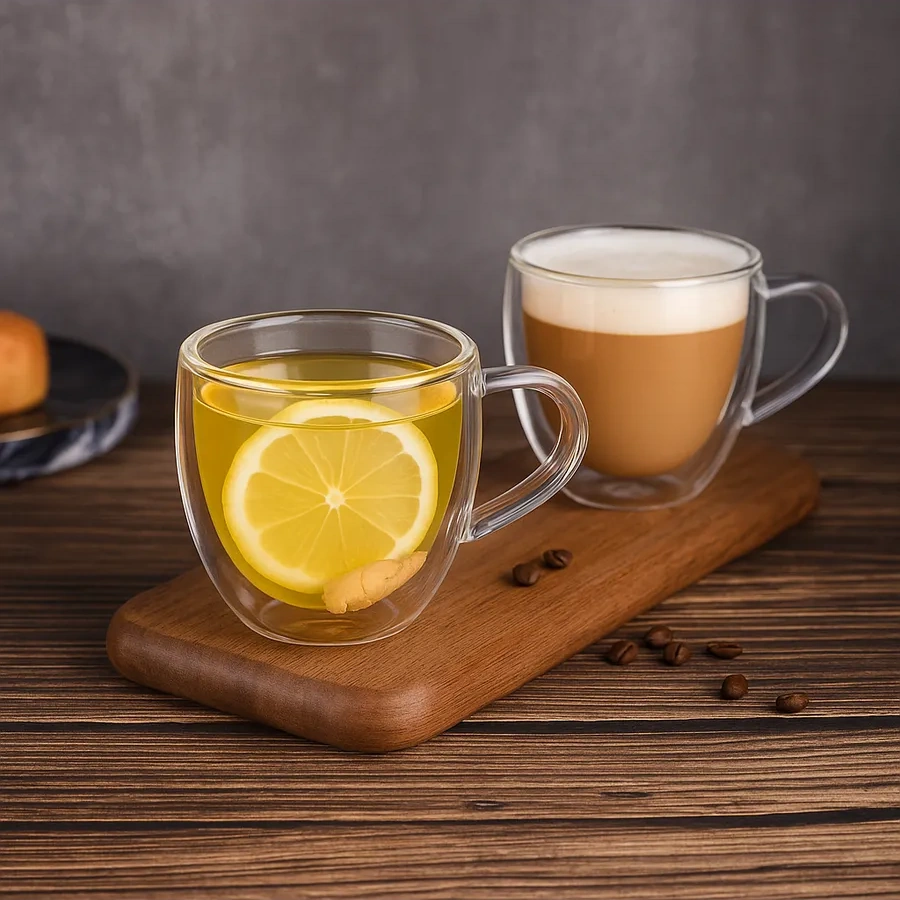 3b Trend Borosilikat Çift Cidarlı Cam Kupa Bardak 250 Ml Şeffaf