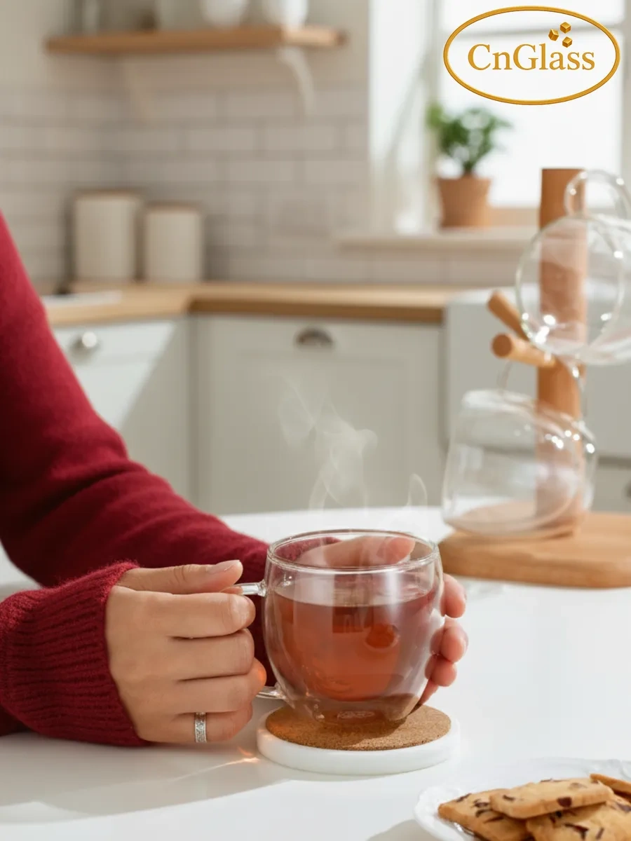 3b Trend Borosilikat Çift Cidarlı Cam Kupa Bardak 250 Ml Şeffaf