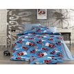 Çocuk Desen Çarşafı Lastikli Tek Kişilik Nevresim Takımı 2 Yastıklı Mavi