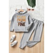Çocuk Fine Baskılı Eşofman Takımı Gri