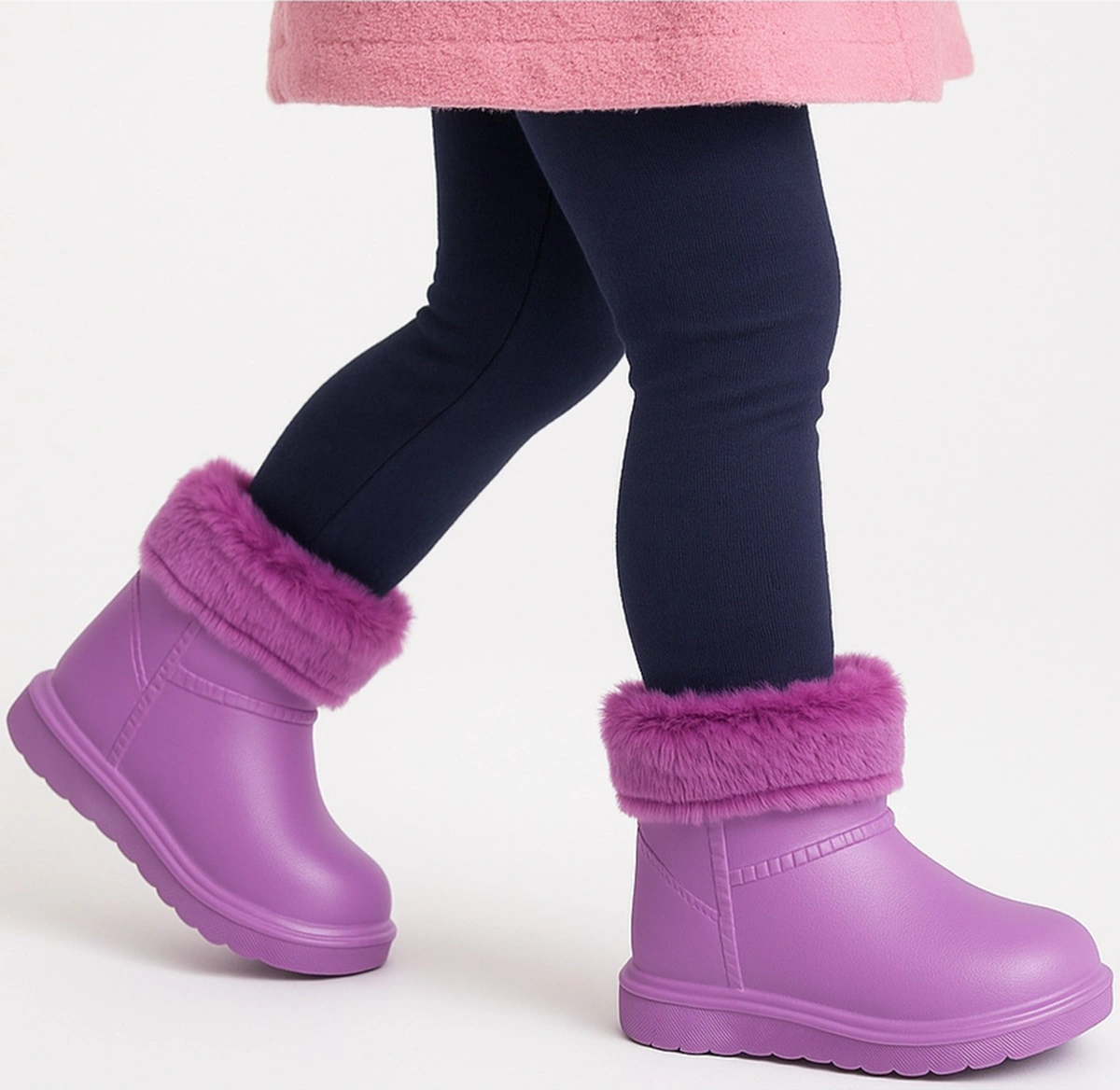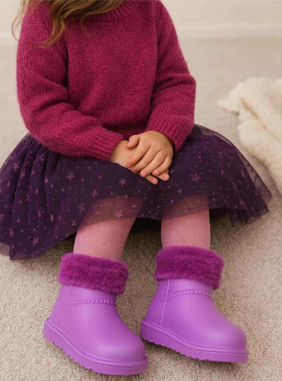 Çocuk Kışlık Kar Yağmur Botu Su Geçirmez, Peluş Astarlı, Eva W10290-225 Tokio Borreguito Modeli Mor-lila