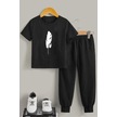 Fermuar Cep Detaylı, Yazı Baskılı Erkek Çocuk Eşofman Altı Siyah