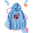 Çocuk Unisex Blackpink Kızlar Baskılı Oversize Kapüşönlü Sweatshirt Mavi