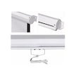 Ürün,kendinden kilitli yaylı store çek bırak şekilde kullanılmakta ,toplarken serbest bırakmamakta fayda var,dokusu mat beyaz yansıma yapmıyor, etrafı siyah kenarlı çerçeve, bu ölçülerde uygun fiyatlı olması avantajlarından biri,en azından duvara yansıtmaktan iyidir.