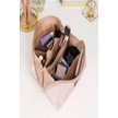 Çok Amaçlı Tutma Kollu Makyaj Çantası Geniş Bölmeli Seyahat Tipi Kozmetik Organizeri X Pembe