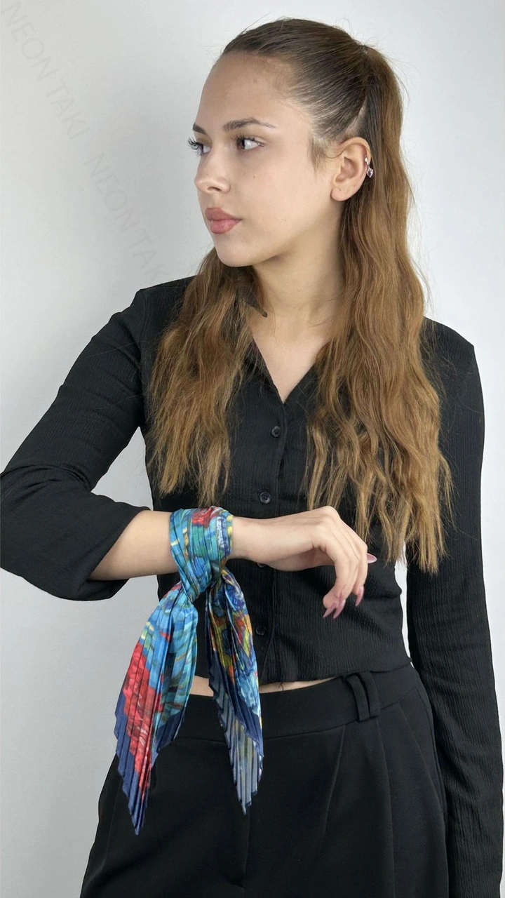 Çok Renkli, Piliseli Katlamalı Fular 30, 48cmx48cm Bej - Çok Renkli