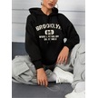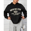 Coke Serisi Letter Graphic Drop Shoulder Drawstring Hoodie-trzksw546 Siyah