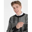 Colins Regular Fit Bisiklet Yaka Kareli Siyah Erkek Kazak Cl1065744 Siyah
