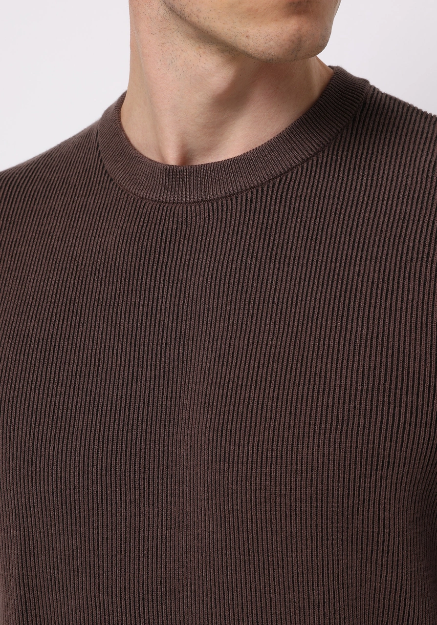 Colins Regular Fit Yuvarlak Yaka Jakarlı Erkek Kahverengi Kazak Cl1076739 Q1.v2 Brw Kahverengi