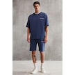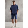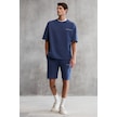 Colombıa Erkek 2'li Set Comfort Fit Rahat Kalıp Yazı Nakışlı Şardonsuz Lacivert Eşofman Takımı