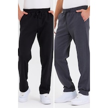 Comeor Antrasit Arka Cepli Etiket Detaylı Düz Paça İçi Pamuklu Erkek Eşofman Altı