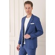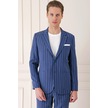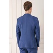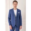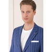 Comfort Fit Çift Yırtmaç İtalyan Çizgili Keten Casual İndigo Ceket C 671 Indıgo
