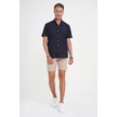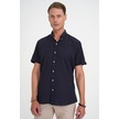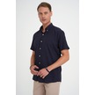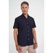 Comfort Fit Düğme Yaka Kısa Kol %100 Keten Düz Lacivert Gömlek G 1596 Lacivert