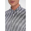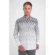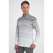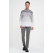 Comfort Fit Pano Desen Düğme Yaka %100 Keten Gri Gömlek G 1594 Gri