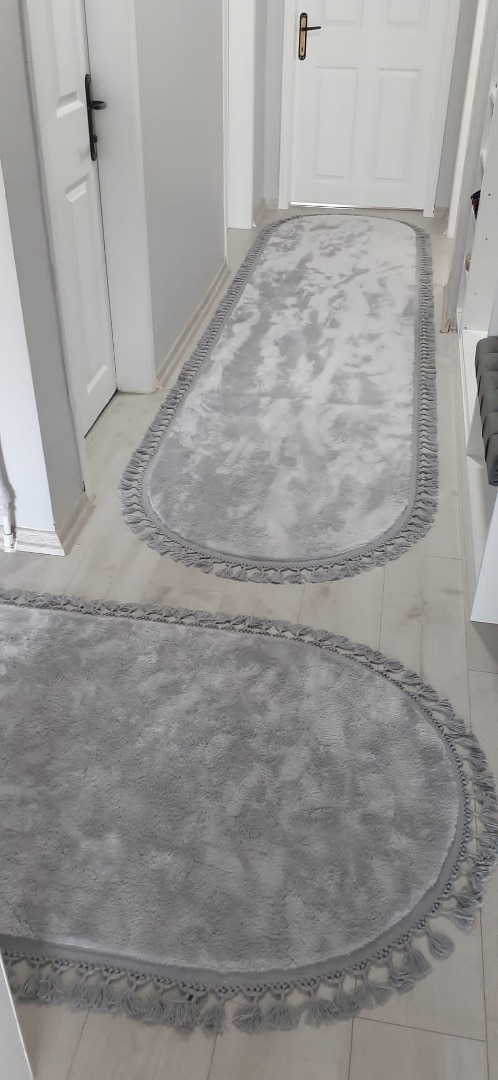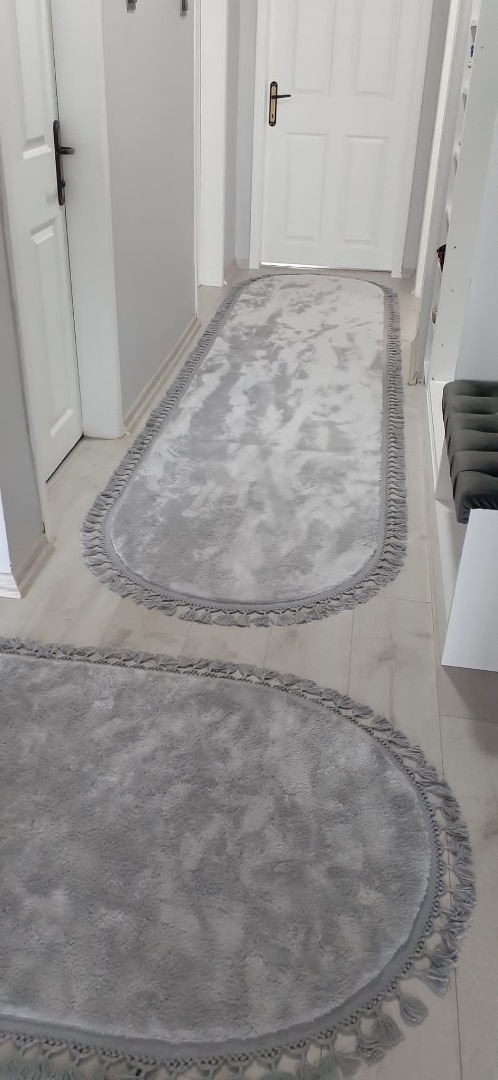 Comfort Puffy Oval Ponpon Saçaklı Peluş Halı Gri