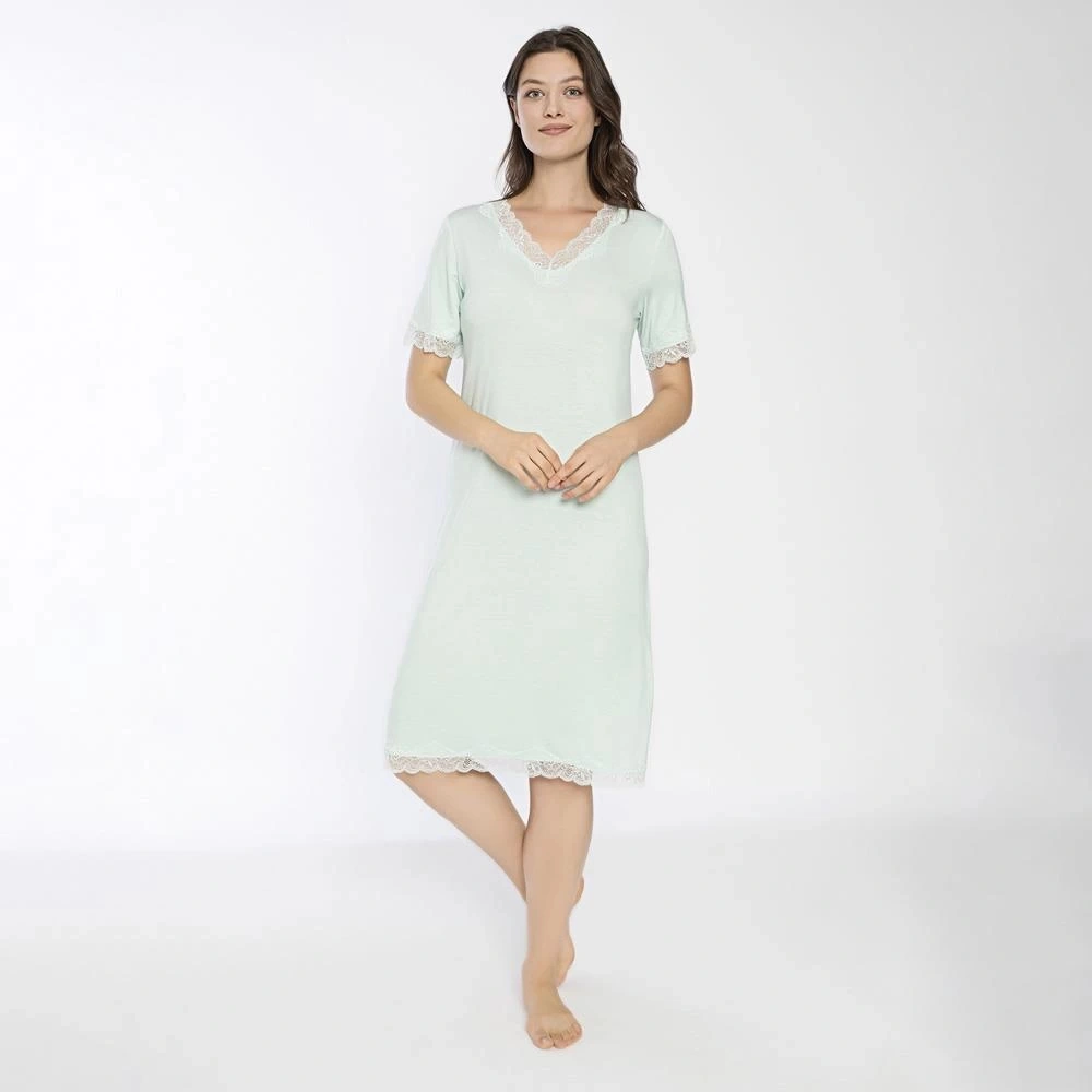 Confeo C840-706 Kadın Viskon Dantelli Kısakol Gecelik Su Yeşili