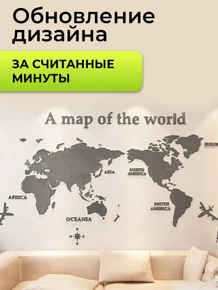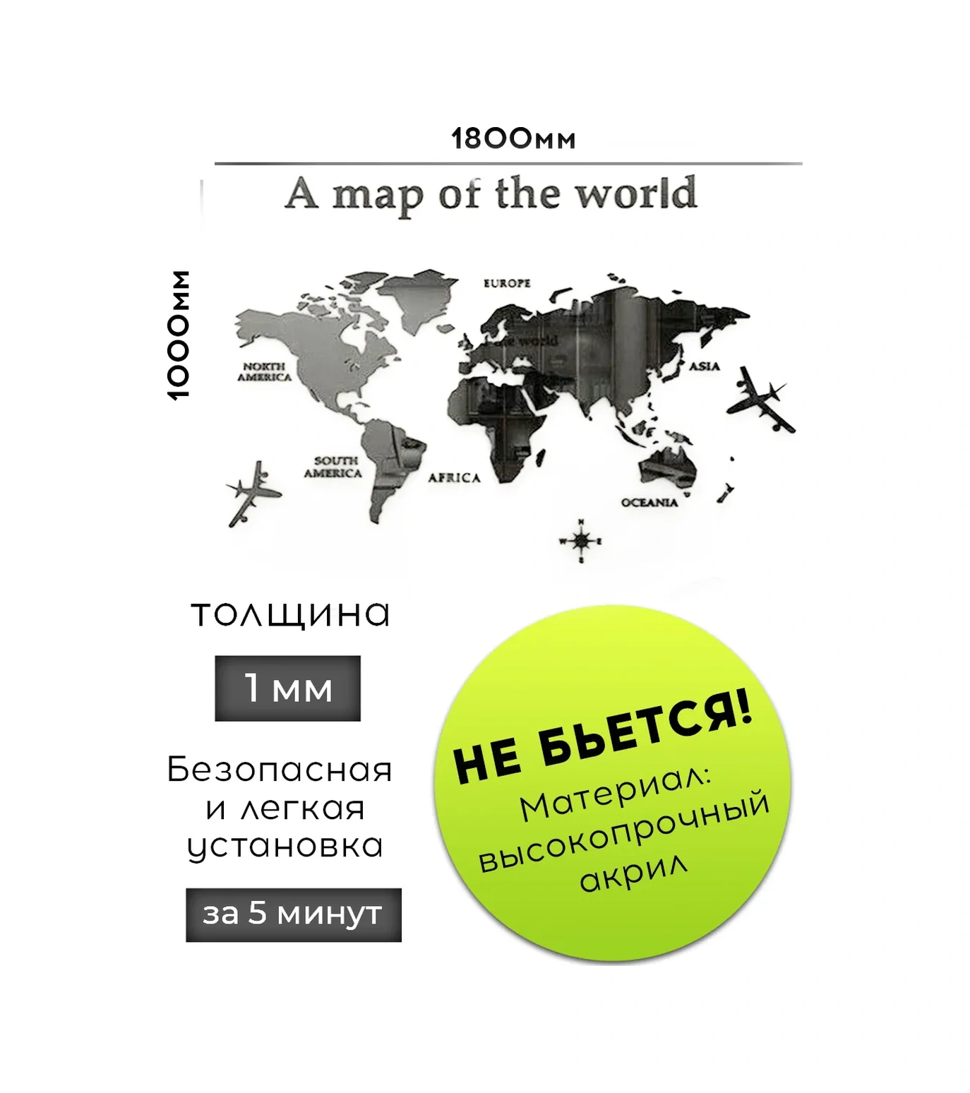 Conflate Ayna Yapışkanlı Dünya Duvar Haritası 316624562 Gümüş